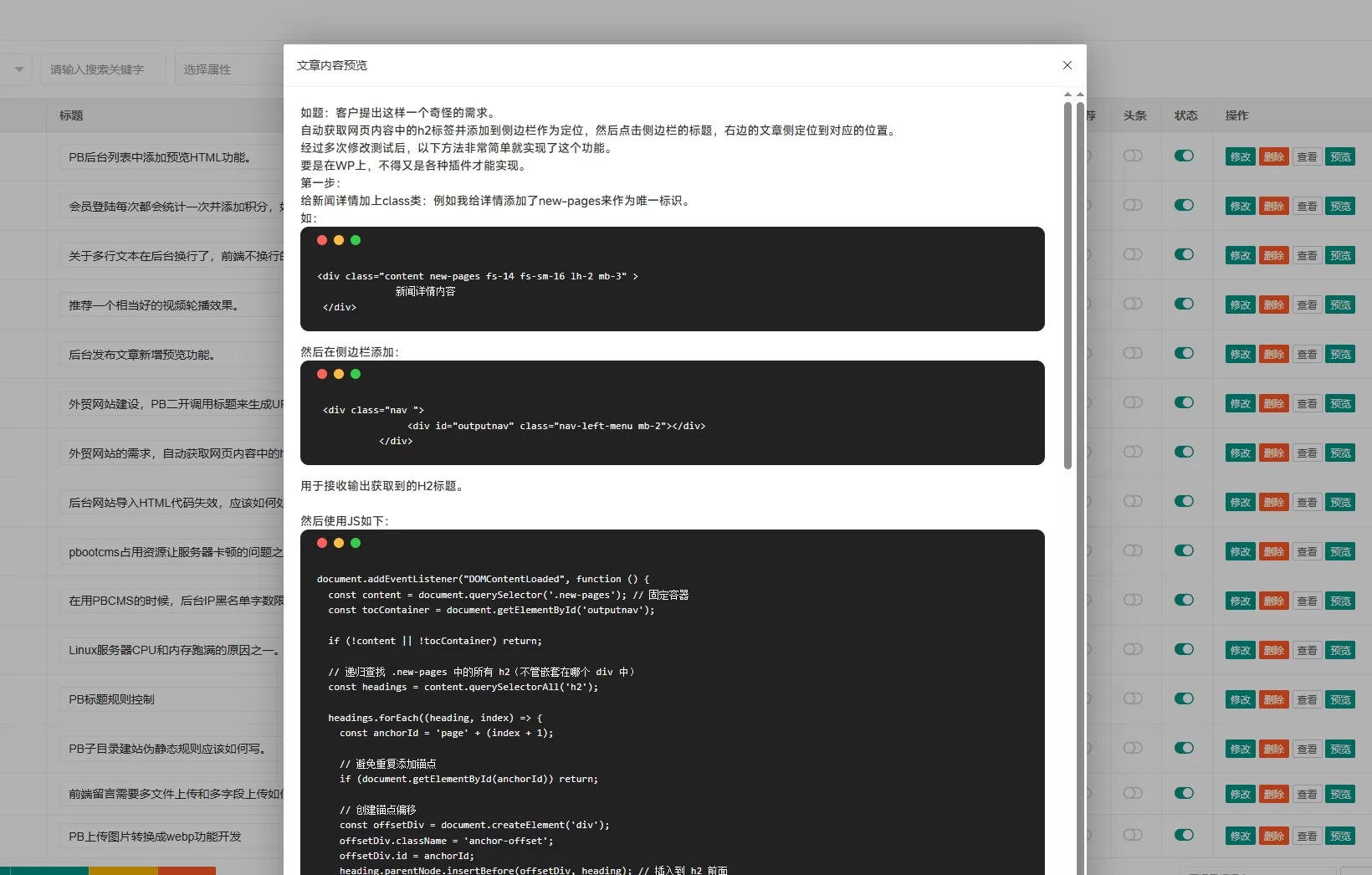 距离上面发布的文章,在发布文章和编辑文章时添加预览HTML的功能之后,我突然又想在列表上直接预览文章。